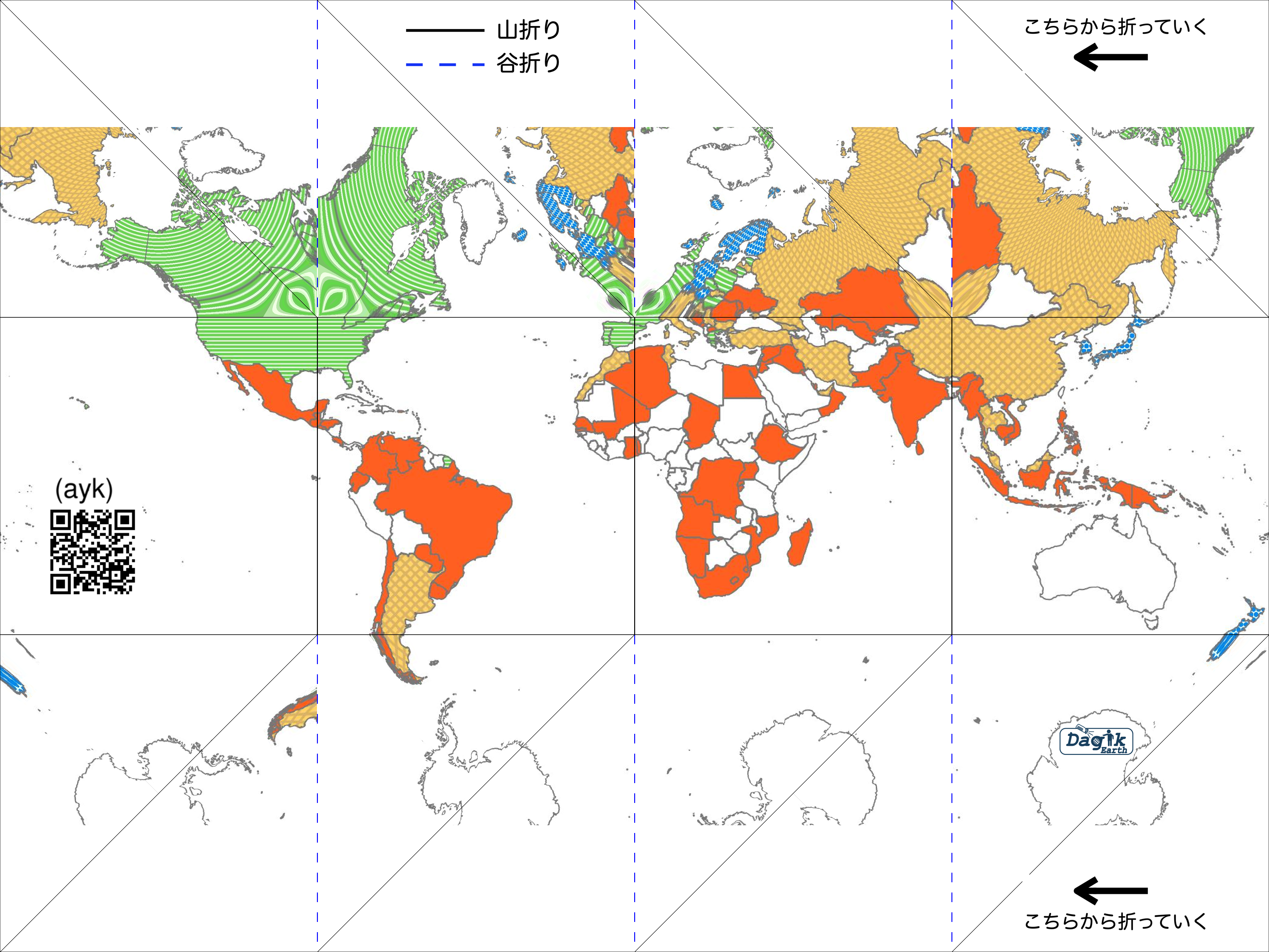 1_1_1 国際的な貧困ラインを下回って生活している人口の割合 2_1_1 栄養不足蔓延率 3_2_1 5歳未満児死亡率 3_4_2 自殺率 4_1_2 中学校の修了率 4_4_1 プログラミング言語を使用してコンピュータプログラムを作成できる人の割合 5_5_1 国会において女性が占める議席の割合 6_1_1 安全に管理された飲料水サービスを利用する人口の割合 6_3_1 安全に処理された家庭排水の割合 7_2_1 最終エネルギー消費量に占める再生可能エネルギー比率 8_1_1 一人当たりの実質GDPの年間成長率 9_5_2 人口1000人あたりの研究者の人数 10_2_1 相対的貧困率 11_5_1 災害の直接の影響を受けた人数 12_3_1 家庭からの食品ロス量 13_2_2 温室効果ガスの1年間の総排出量 14_1_1 海岸でのごみの数 15_2_1 1年間での森林面積の変化率 16_1_1 殺人の数 17_2_1 後発開発途上国向けのODA純額の対GNI比 PC version download Origami (balloon) Origami (fujimoto cube) Web version (SDGs Dagik Earth) List of ID and indicator title SDG indicator card (PDF)